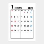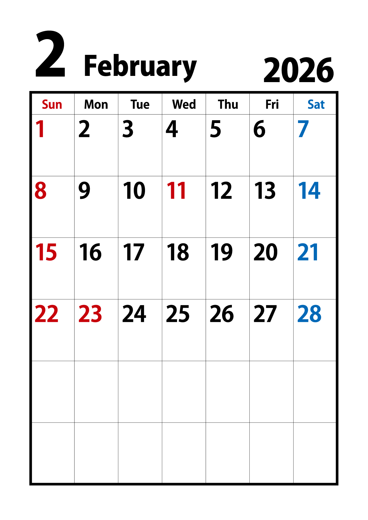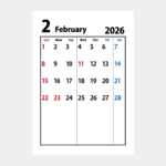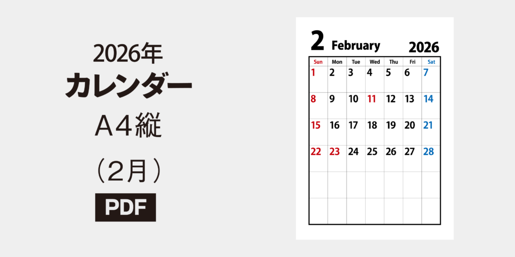 シンプルなA4縦の2026年2月のカレンダーを作りました。